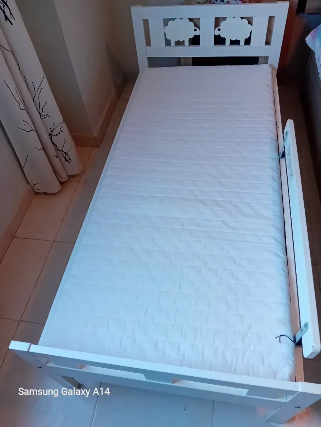 Cama infantil blanca con ovejas