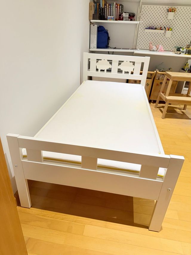 Detalles del productoCama individual blanca de IKEA, colchon incluido, perfecta para habitaciones infantiles. Su diseño sencillo se adapta a cualquier decoración.