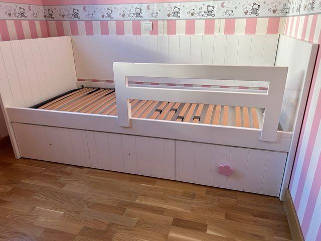 Detalles del productoSe vende cama infantil con barrera de seguridad y cajones inferiores de almacenaje y estantería con 3 módulos individuales.