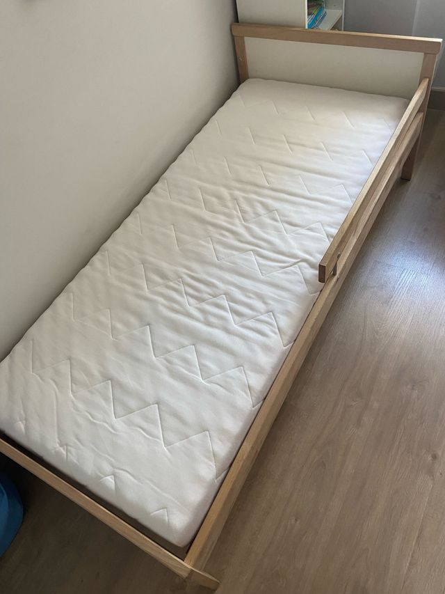 Detalles del productoCama infantil de Ikea Modelo Sniglar con colchón y somier. Madera de haya.