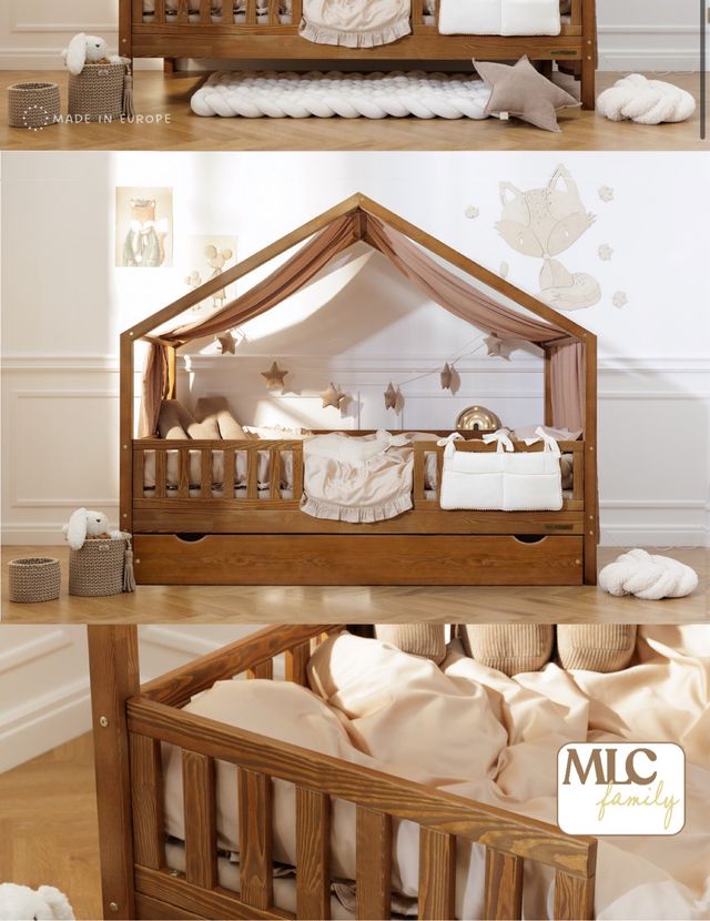 •La cama viene con dos tipos de barandilla, para una entrada lateral o central.
