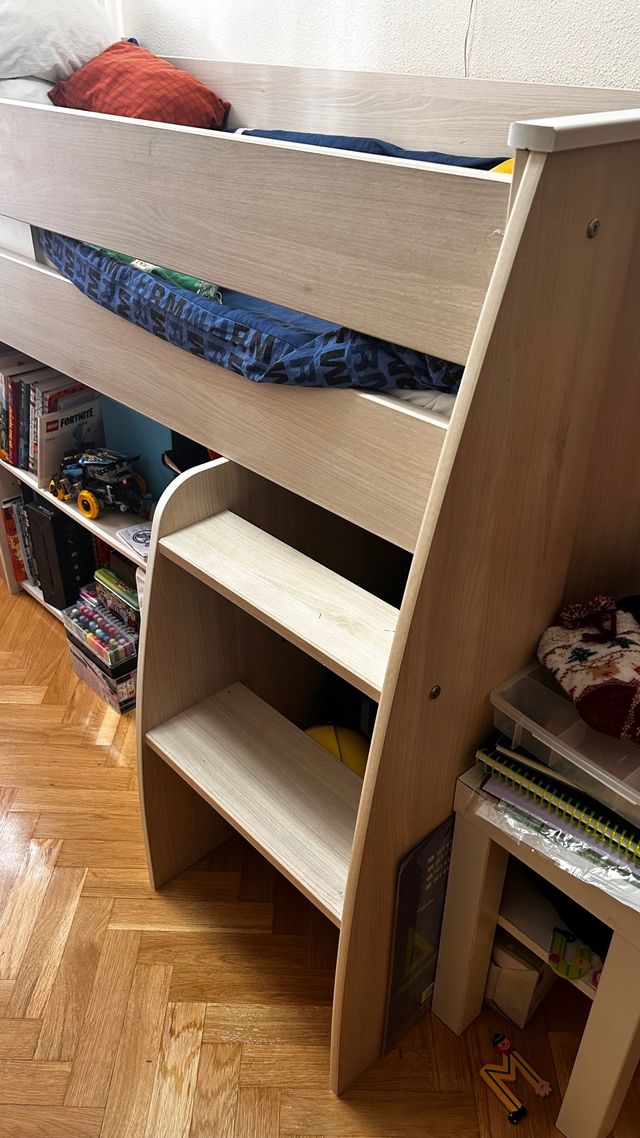 Cama juvenil con escalera y almacenaje