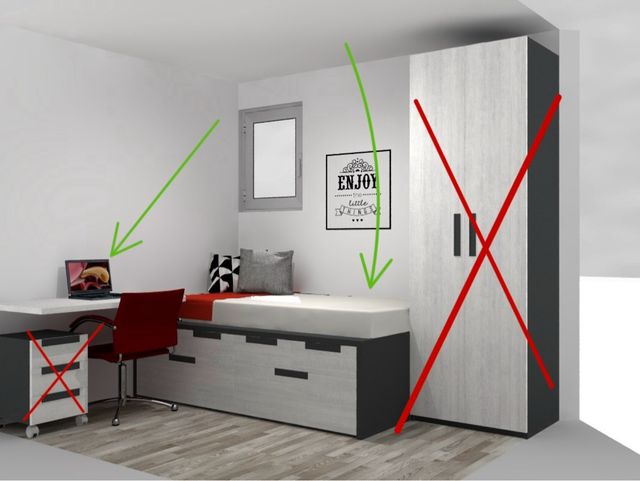 Cama juvenil y escritorio (Habitación)