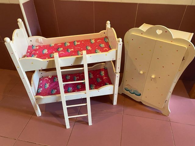 Detalles del productoConjunto de cama/litera y armario para jugar con muñecas.