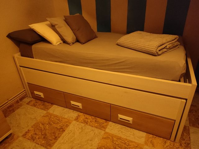 Detalles del productoCama nido completamente nueva, color blanco nordik y cambrian, tres cajones de 60cm de fondo x 55 cm ancho x 16cm de profundidad.