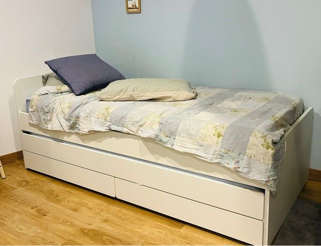 Cama nido SLÄKT en color blanco, medidas de 90x200 cm (sin colchones). Como nueva, muy poco uso.