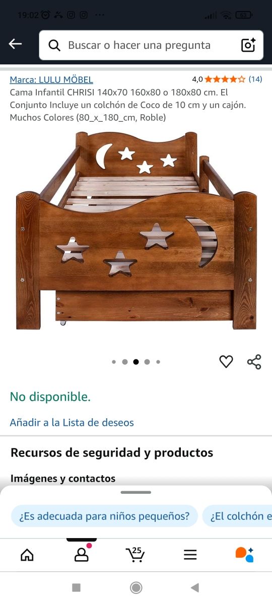 Detalles del productoSe vende estructura de cama de madera maciza de pino teñido igual a la primera foto, incluyendo colchón, todo en perfecto estado, medidas del colchón 1,80*0,80. No hago envíos. Mejor que las de Ikea.