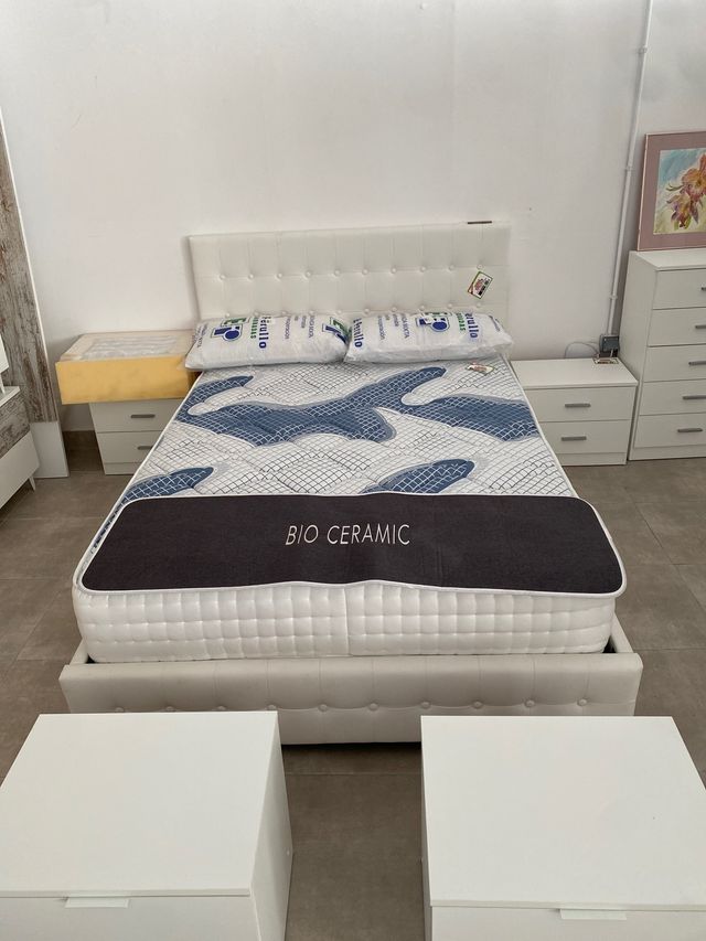 CAMA POLIPIEL CON CABECERO Y SOMIER BLANCL
