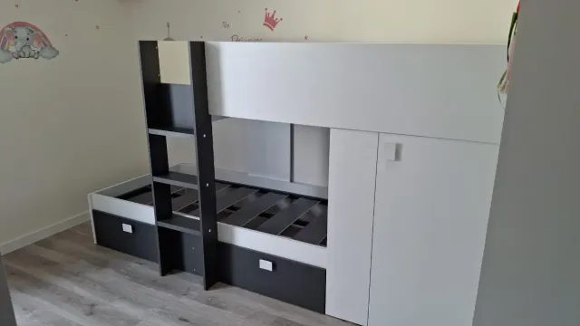 Se vende cama tren con armario integrado, ideal para optimizar el espacio en habitaciones infantiles o juveniles. Combina funcionalidad y diseño.