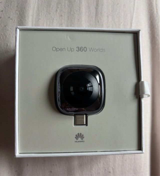 Cámara panorámica 360 de Huawei. Diseñada para capturar imágenes 360 grados y vídeos envolventes. - Diseño compacto y moderno. - Conexión USB-C.