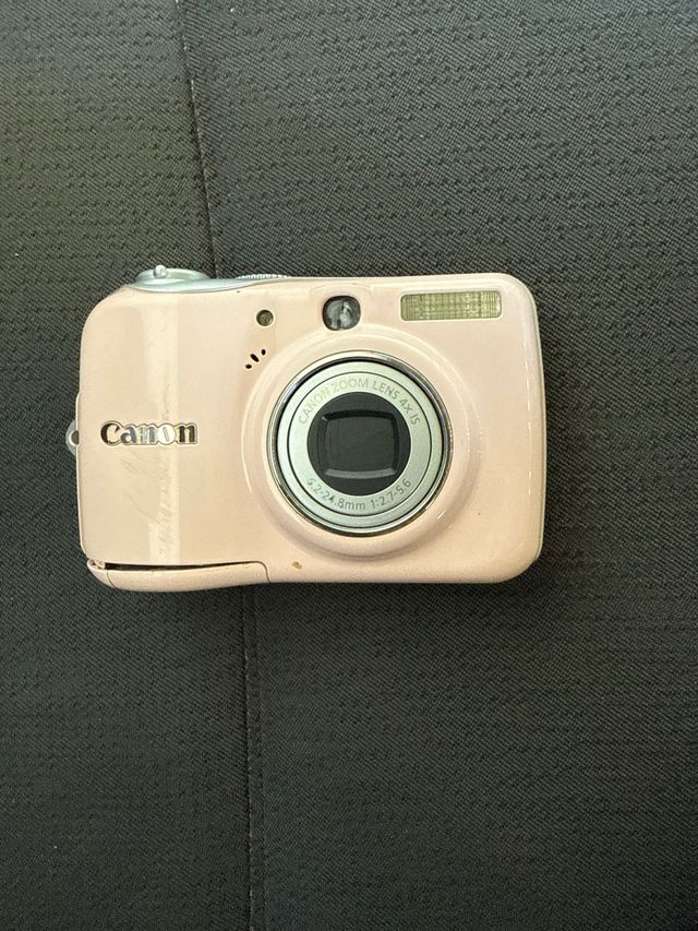 Detalles del productoCámara digital compacta Canon en color rosa. Ideal para capturar momentos especiales con su zoom óptico esta un poco dañada en la tapa de la bateria