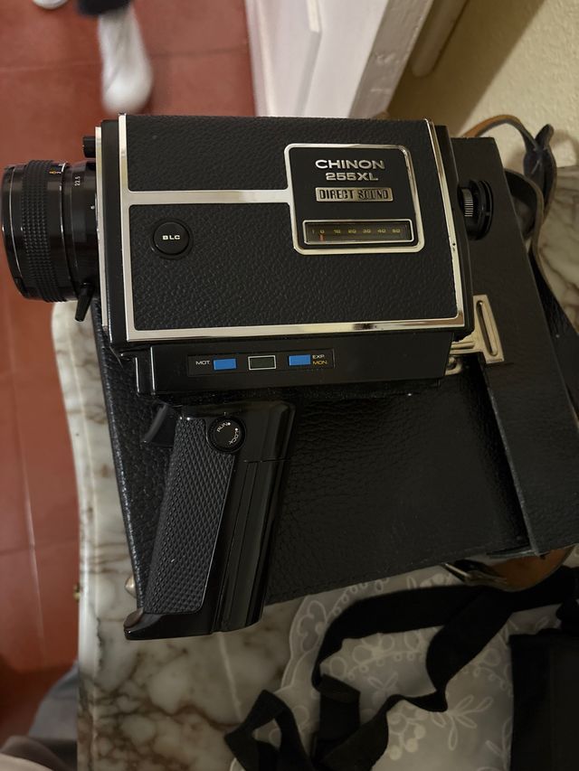Cámara de vídeo analógica Chinon 255XL con sonido directo. Un modelo clásico para coleccionistas. - Cuerpo de color negro. - Lente con zoom. - Incluye asa y correa.