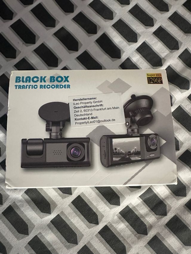 Detalles del productoGrabador de conducción Black Box en perfecto estado. Incluye cámara dual y accesorios. - Cámara frontal y trasera. - Resolución Super HD 1296p. - Fácil instalación. - Marca: Ileo Property GmbH.