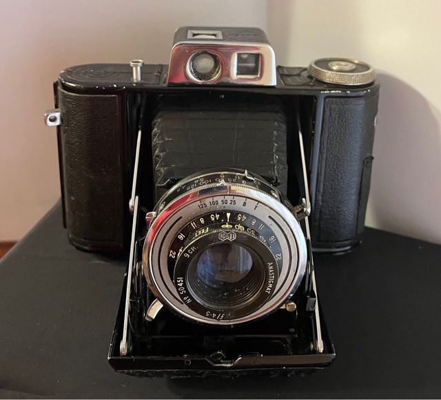 Esta es una cámara de fuelle en horizontal. es muy curiosa, de 1950. Mi colección se basa más en la estética que en los conocimientos de fotografía, por lo que no garantizo que su funcionamiento, si lo tuviera, sea perfecto. El envio va por cuenta del comprador. tambien estaria dispuesta a realizar algun intercambio, pero siempre con cámaras anteriores a 1960.