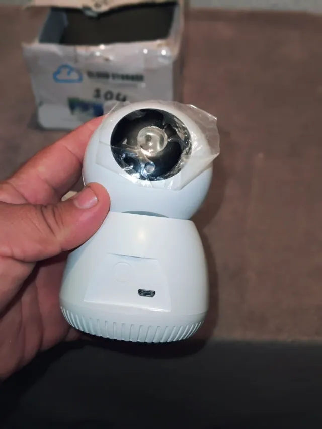 Cámara de vigilancia en color blanco. - Diseño compacto y moderno. - Puerto de carga micro USB.