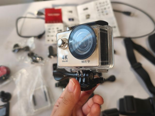 Detalles del productoCámara tipo GoPro deportiva 4K Ultra HD con WiFi, en perfecto estado. Incluye varios accesorios. - Resolución de video 4K Ultra HD. - Conectividad WiFi. - Incluye accesorios adicionales (ver fotos), por ejemplo carcasa sumergible y múltiples soportes (casco, pecho, bici, palo selfie, etc.).
