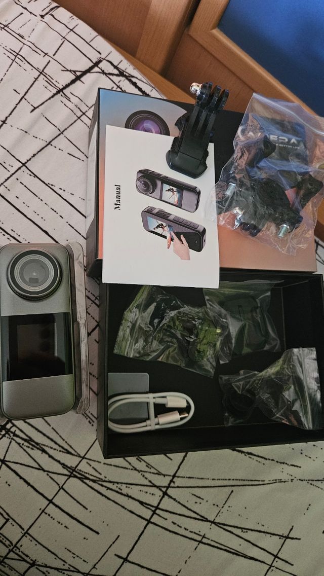 Detalles del productoCámara deportiva sumergible de doble pantalla nueva Incluye accesorios. Modelo gris antracita