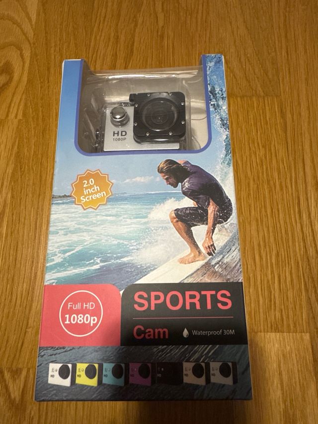 camara deportiva full hd 1080p. pantalla trasera 2”, resistente al agua