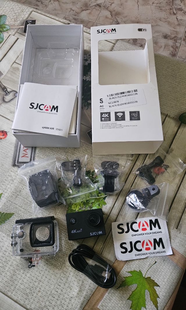 Cámara de acción SJCAM SJ4000 AIR con conectividad WiFi y grabación 4K. - Incluye accesorios. - Funda impermeable. - Cable de carga USB.