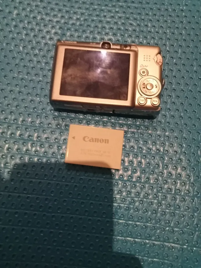 Detalles del productoCámara digital compacta de la marca Canon en color plateado. Incluye batería.