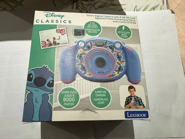 Vendo cámara Disney Sticth, cámara Digital Infantil 4 en 1 con Funciones de Foto, vídeo, Audio y Juego. Tarjeta SD de 32 GB incluida, color azul. Caja original.