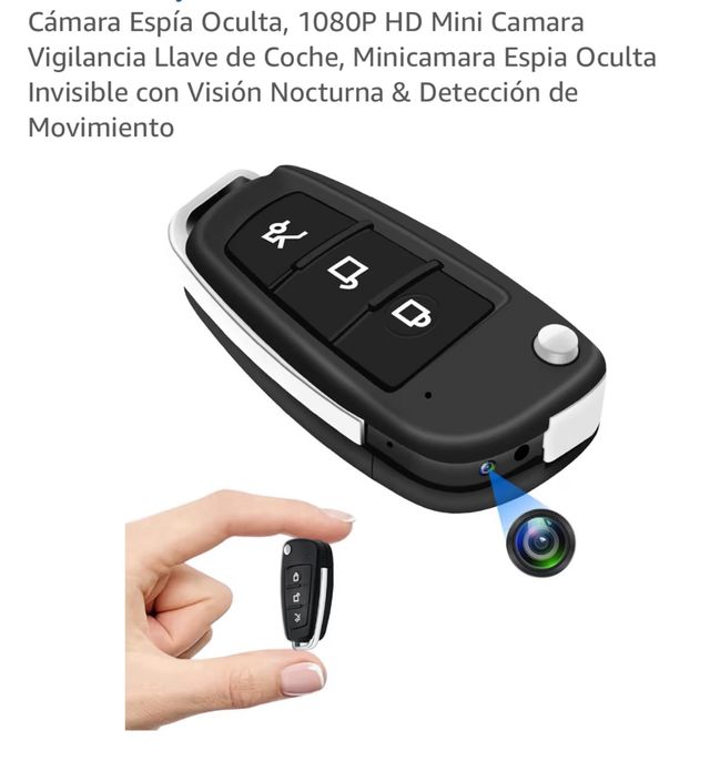 Mini cámara espía oculta con forma de llave de coche. - Resolución HD 1080P. - Visión nocturna. - Detección de movimiento.