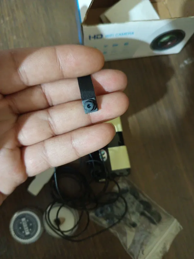 Pequeña cámara espía con conexión WiFi. - Diseño compacto y discreto. - Ideal para vigilancia o proyectos especiales. - Incluye cables y accesorios.