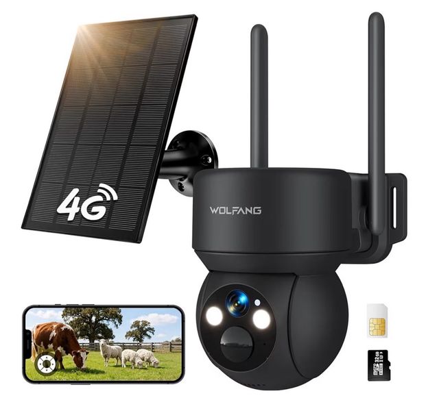 Detalles del productoWOLFANG Cámara de campo, 4G LTE alimentada por energía solar con visualización de 2.5 K de video en vivo, inclinación de 355°, ajuste Remoto de 90°. Contiene tarjeta SD de 32 G y tarjeta SIM de prueba con 300 MB. Después puede usarse otra o renovar. Almacena en la tarjeta SD incluida o servicio en la nube (con suscripción)