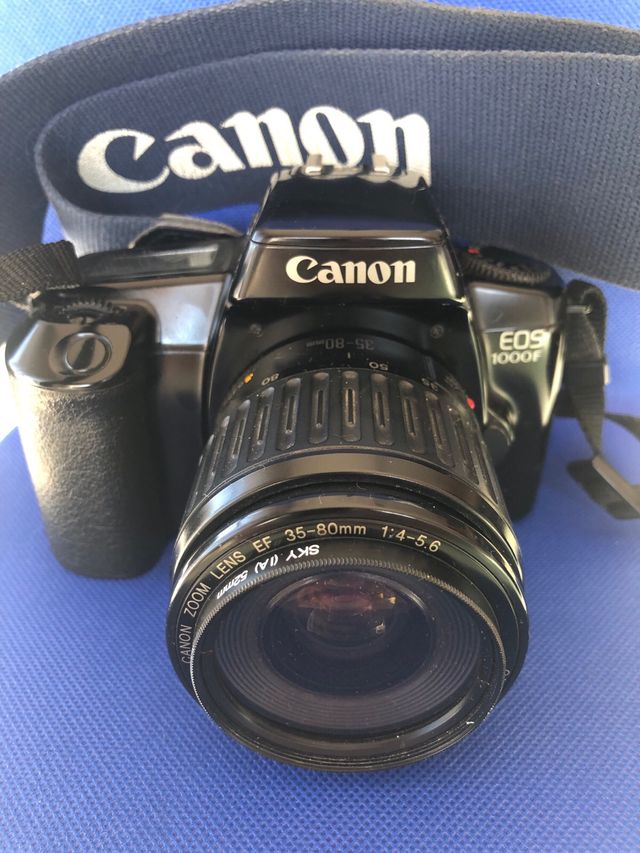Detalles del productoCámara de fotos analógica (35mm) Canon EOS 1000F con obtica zoom 35-80mm 1:4-5,6 , en perfecto estado de funcionamiento , funciona con bateria 2CR5 6v , regalo bateria y filtro de protección lente , correa canon , no tiene funda transporte