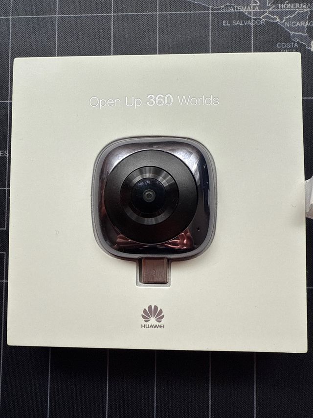 Cámara panorámica Huawei para capturar mundos en 360 grados. - Diseño compacto y moderno. - Conexión USB-C.