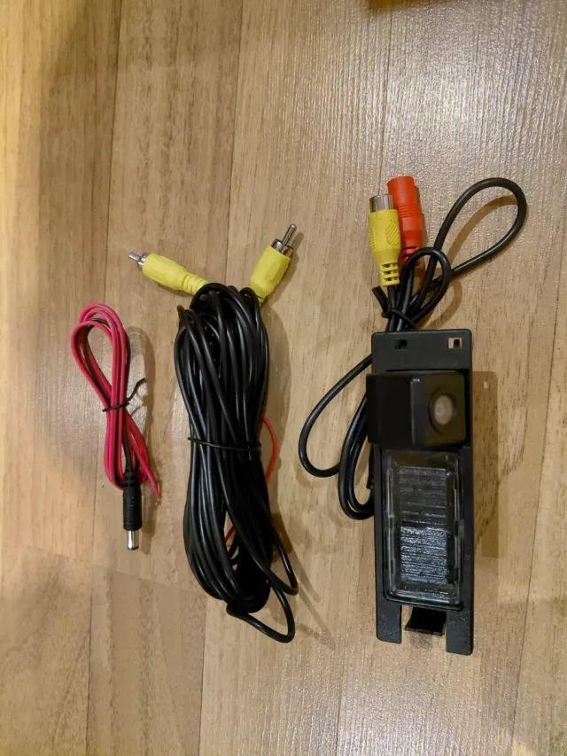 Detalles del productoKit de cámara HD de marcha atrás para coche con cables de conexión.