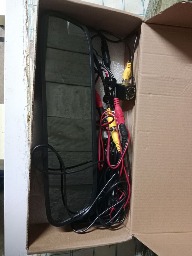Detalles del productoEspejo retrovisor con cámara de visión trasera. Incluye cámara y cables. Está en buen estado y listo para instalar.