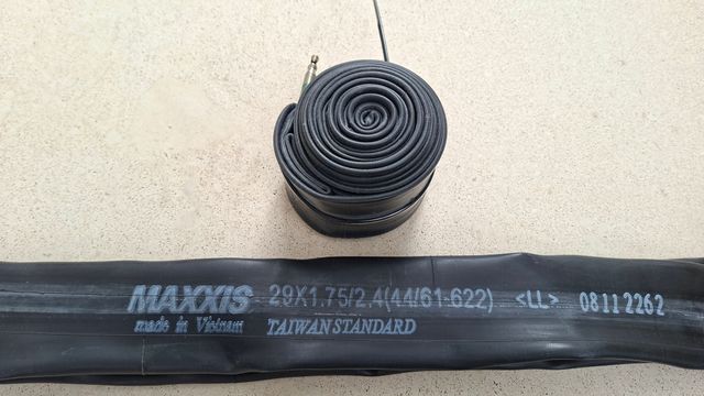 Detalles del productoNueva sin usar, venia en mi bici nueva pero como la he tubelizado, no las uso. Tengo 2, precio del anuncio por unidad. Camara rueda bici Maxxis 29x1.75/2.40