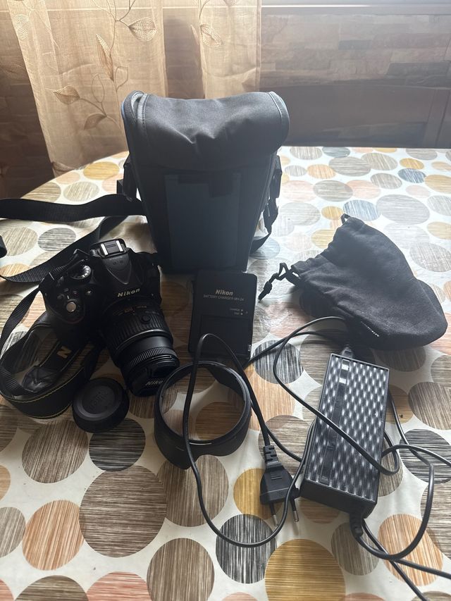 Cámara nikon D5200 Objetivo 18-55mm Cargador y 2 baterías Mochila para transportarla Saquito protector de objetivos Comprada por capricho utilizada pocas veces