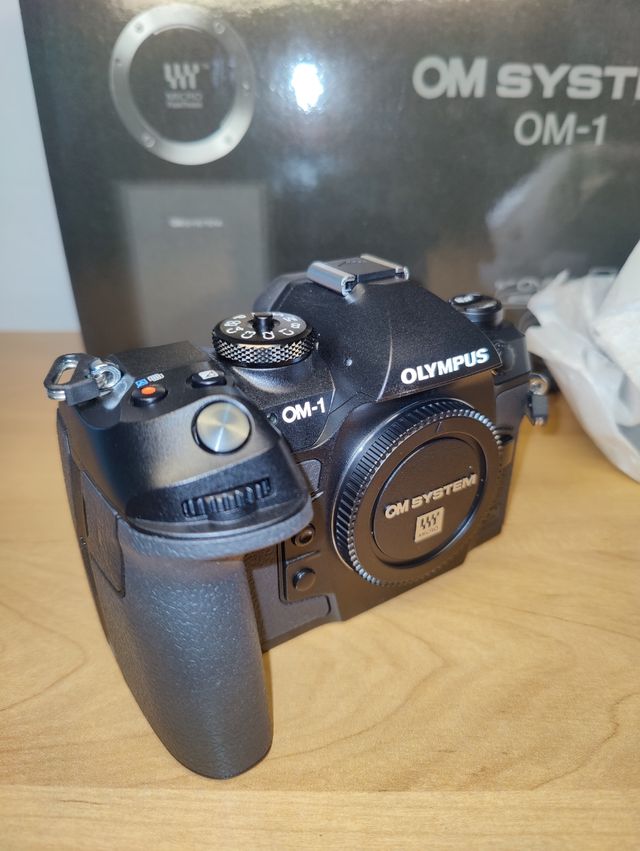 Cuerpo de cámara Om system OM1 con 1408 obturaciones y garantia hasta junio de 2026. Pídeme más fotos si lo necesitas. Cuerpo: 1300€. Se compró en Amazon España.