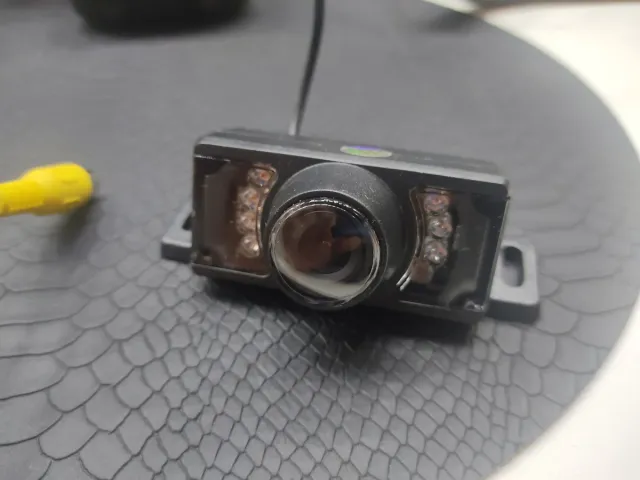 Cámara trasera para coche,tiene infrarrojos para visión nocturna,salida de video, funciona a 12v,como nueva.