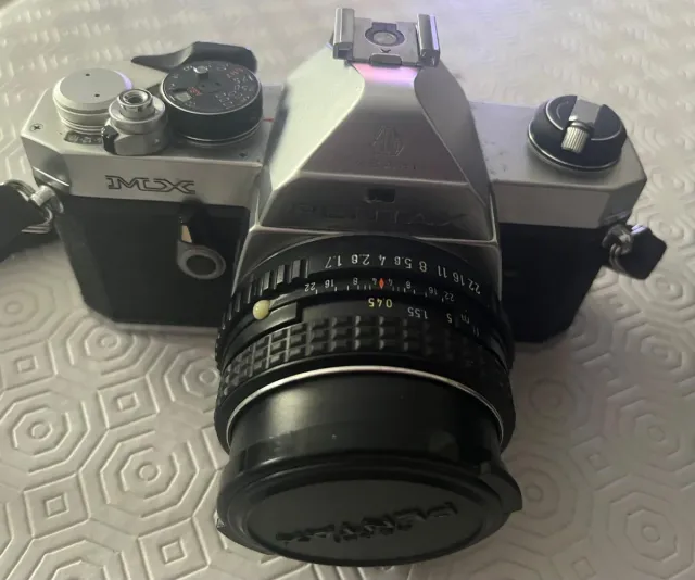 Cámara analógica Pentax MX. - Cuerpo de cámara. - Lente Pentax-M 50mm f/1.7.