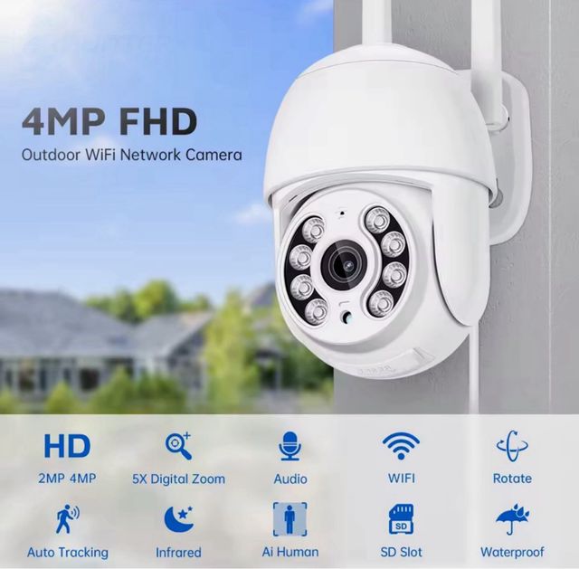 Detalles del productoCámara de vigilancia IP para exteriores con conexión WiFi. Resolución 4MP FHD.