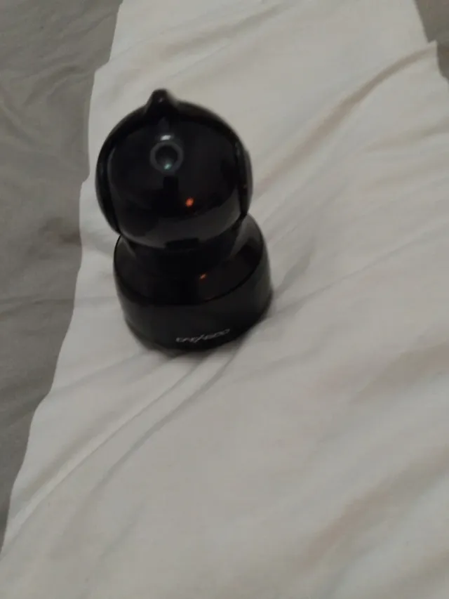 Cámara de seguridad inteligente con diseño moderno. - Color negro brillante. - Base giratoria para mayor cobertura.