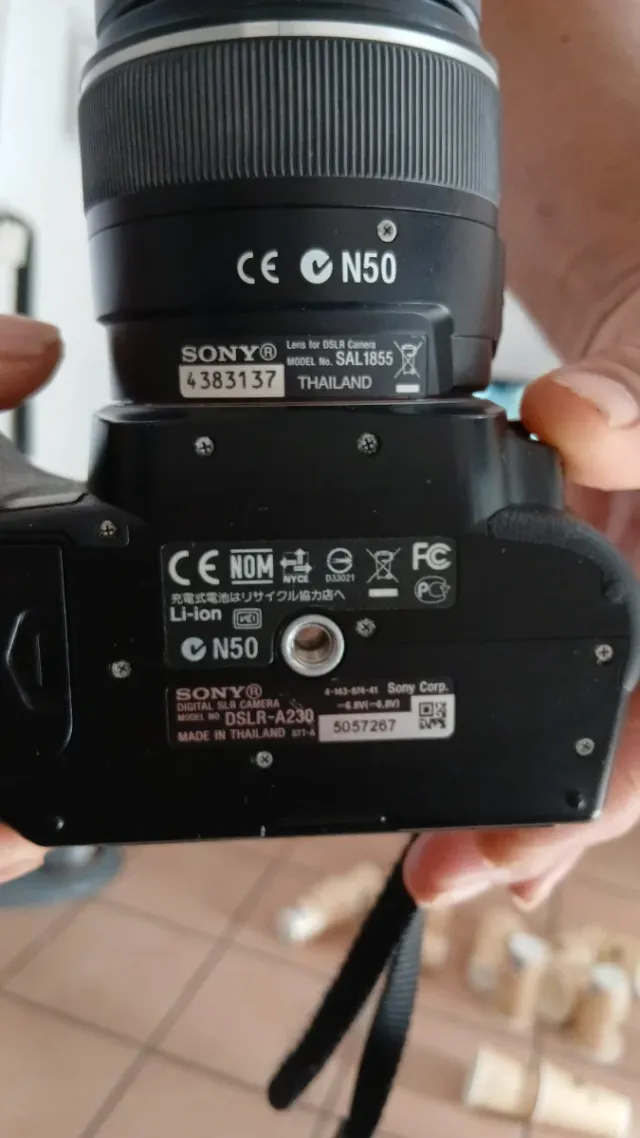 Cámara réflex digital Sony modelo DSLR-A230. - Fabricada en Tailandia. - Lente SAL1855.