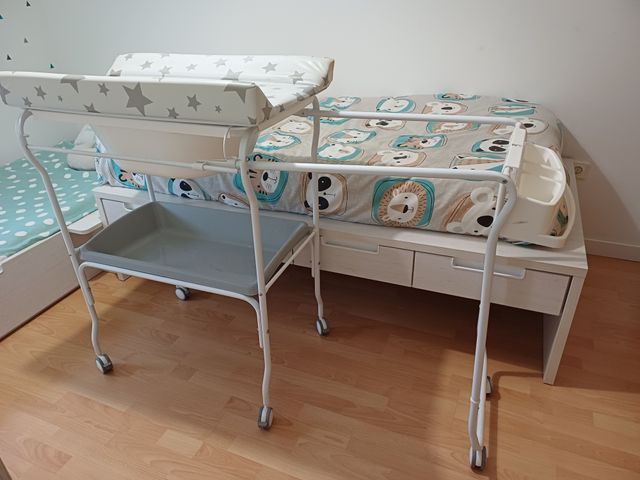 Detalles del productoCambiador para bebé con bañera integrada. Estructura metálica y bandeja.