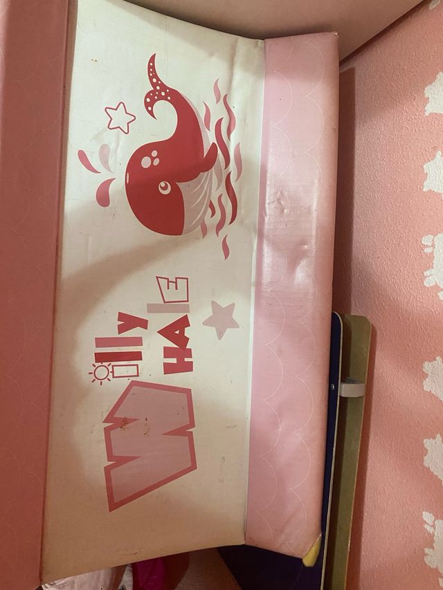 Detalles del productoCambiador bañera para bebé, con diseño de ballena Willy Whale. Está en buenas condiciones, aunque presenta algunas señales de uso. Las manchas que tiene se linpian facil ( os la limpio yo)