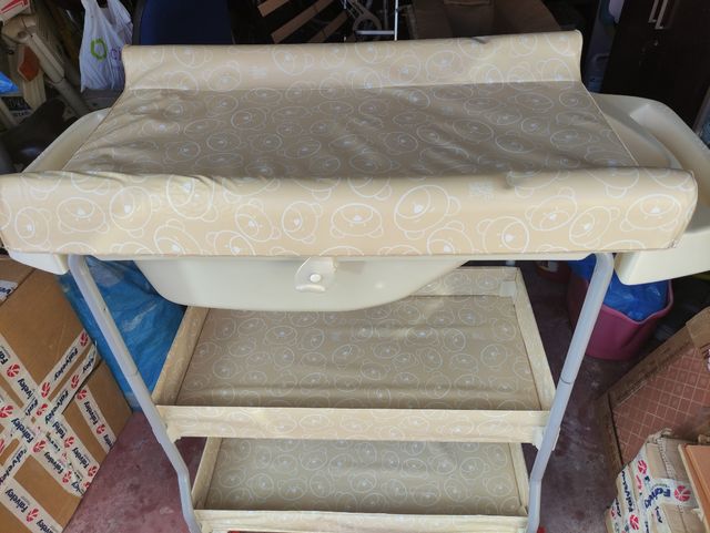 Detalles del productocambiador bebe con bañera, y dos bandejas para dejar accesorios, pañales, cremas, etc, las medidas de largo 79cm, ancho 50cm y alto 93 cm,está en buen estado, mejor verlo. Medidas del producto