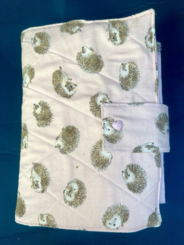 Preciosa funda cambiador para bebé, ideal para llevar en el bolso Es de color rosa y tiene un estampado de erizos.