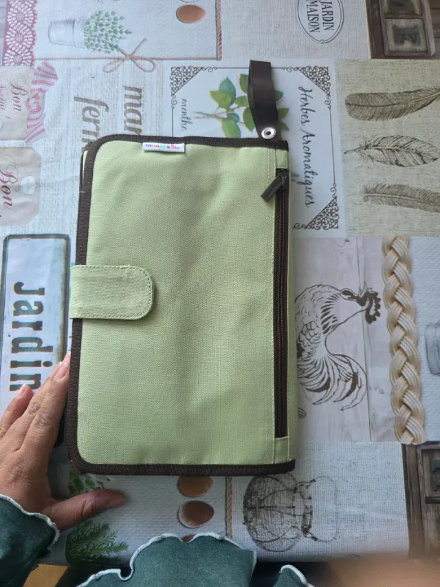 Práctico cambiador de bebé de la marca Munchkin. Su diseño es ligero y fácil de llevar. - Color verde claro. - Ribete marrón. - Cierre de cremallera.