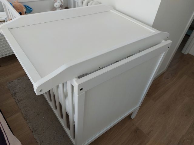 Detalles del productoCambiador de bebé, para poner encima de la cuna. Es de madera en color blanco. Es compatible con cunas de 120 de largo y 60 de ancho. Muy útil para zonas con poco espacio. Medidas del producto