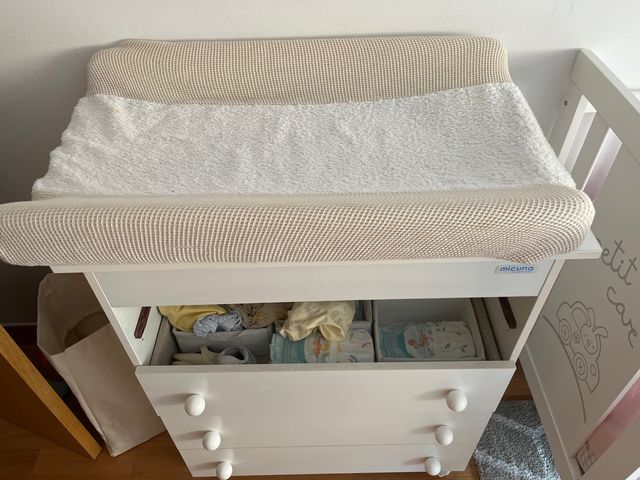 Detalles del productoCambiador Micuna con bañera integrado, le falta un cajón, tal y como se puede observar en la foto. por lo demás, se encuentra en perfecto estado. nos ha sido muy uti pero ya no la necesitamos. Ideal para facilitar el cuidado del bebé. le falta