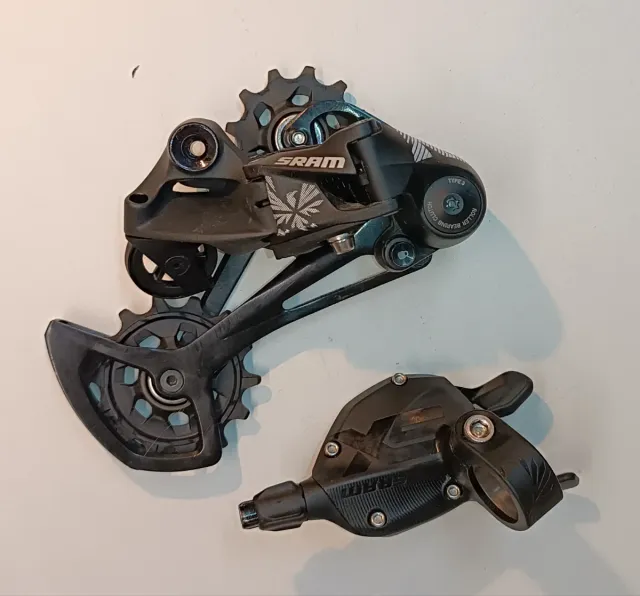 Conjunto de cambio SRAM NX para 12 velocidades y mando cambio sram sx eagle trigger 12v. - Cambio trasero SRAM NX. - Mando de cambio SRAM NX.