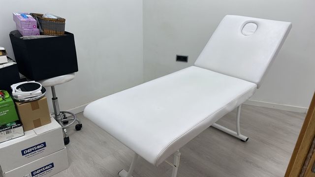 Detalles del productoCamilla en muy buen estado, con respaldo reclinable y orificio facial. Tapizado blanco, fácil de limpiar. Ideal para centros de estética, masajes o tatuajes. Muy cómoda y resistente.
