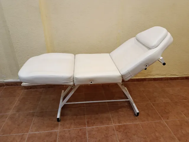 Detalles del productoCamilla de estética de color blanco, ideal para tratamientos de belleza y masajes. Su diseño es funcional y se adapta a diferentes necesidades.